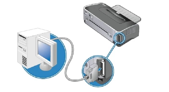 - Подсоедините USB-кабель — одну сторону кабеля подключите в USB-порт принтера (обычно на задней или боковой панели), другую сторону — в USB-порт ноутбука.
